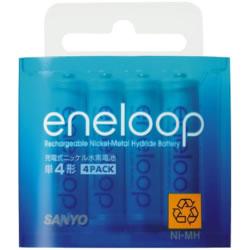 【在庫あり(15時注文迄当日出荷可能)】 SANYO HR-4UTG-4BP eneloop 単4形 4個入りパック HR4UTG4BP価格: 999円レビュー評価: 4.75 レビュー数:8 JAN:4973934418639本体重量:13 g(1個)商品特徴:●充電して約1000回くり返し使えるので、1回あたりでのコストは約4円。また、寿命がきてもリサイクルできる環境に配慮した次世代電池です。●時間経過とともにエネルギーが減少する性質(自然放電)をエネループは大幅に改善しました。買ってすぐに使え、充電しておけば1年後でも使いたい時にすぐ使えます。●乾電池に比べパワーが長持ち。デジカメなら約4.4倍の撮影枚数を実現しました。(サンヨー社製アルカリ乾電池(LR6B)との比較。)●エネループなら、-10℃での使用も可能。もちろんスキー場でも使えます。(常温使用に比べると電池の使用時間は |